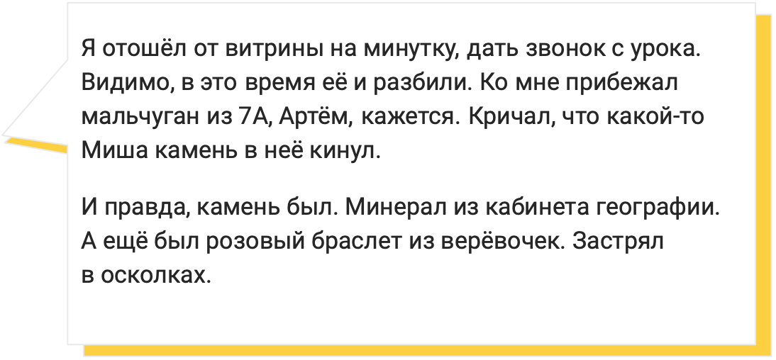 Вы оглядываетесь и видите, что Люба прячет глаза, а одноклассник Артём невесело улыбается.